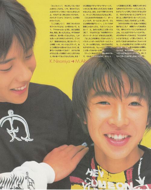 在他快要睡着的时候打扰他,对我来说是最开心的时候(笑)。我觉得在aiba kun看上去很幸福的迷迷糊糊的时候,故意突然押他一下,他也不会生气这点很厉害呢。人可以做到这样啊……这么想着今天也来试一下吧(笑)。