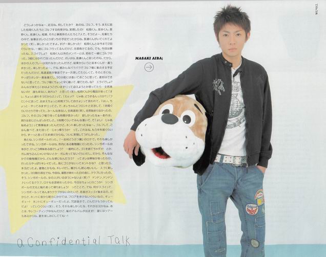 该怎么说啊~近况。做了什么?那个,打高尔夫。对,之前说到过的和matsuoka kun们一起约好了去打高尔夫,实现了哦!matsuoka kun,sakamoto kun,nagano kun,nagase kun,aiba,还有事务所的人一共7个人。对了哦,前辈们之中本来只有我一个后辈的预订。nagase kun去了真好呢(笑)。很开心呢。非常开心!和matsuoka kun至今大概有过两次,一起去打高尔夫,但是我都输了。可是这次我赢了哦。很厉害吧?除了matsuoka kun以外,和其他的成员都是第一次去打高尔夫。分成3组来比的,我是和nagase kun一起,所以都没有看到其他人的表演。结果上来说sakamoto kun是打得最好的。很开心啊~。早上大家约好都是各自去高尔夫场集合的,可是高速公路上发生事故非常的堵。这个时候啊,果然因为是我后辈,想着要提前三十分钟到呢。想着不可以迟到!就提早到了高尔夫场,睡了一下。呐?很伟大吧?想着大家来了以后用“早上好”来迎接他们的……都没人来啊!谁都没来。想着啊咧?(笑)matsuoka kun打电话过来说“我大概会迟到一点。”“诶?那怎么办?”被说“去前台,你这家伙稍微争取到点时间去”。我就回答“嗨依。稍微……试试看吧!”然后,我就和前台交涉,一个人等了一个小时。大家都没有来。全员迟到(笑)。完全不能开始啊,高尔夫。在这个高尔夫场等待的时间好长!好寂寞啊~这个。周围都是大叔啊。虽然差不多一个小时以后大家都到了,说着“好了!那么开始吧!”就无事开始了。真的很开心啊~。打完高尔夫,吃完饭,然后“那么回去吧!”。这个啊,已经是差不多半年前开始,一——直说着的约定呢。终于实现了,我很开心啊。
