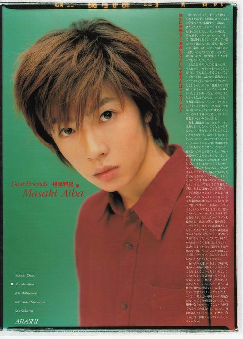 也很平常地有女性朋友呢。男性朋友和女性朋友的区别?没有什么不同,没有,没有。我觉得女孩子说的亲友可以接受啊,不过朋友是朋友。我是属于可以接受的那类。我觉得Arashi的成员算是朋友也是伙伴。Jr时代也好现在也好,做的工作也没有变化啊。所以关系也没有什么变化。之前和Sho kun啊Ohno kun也是像现在这种感觉地在交往。
