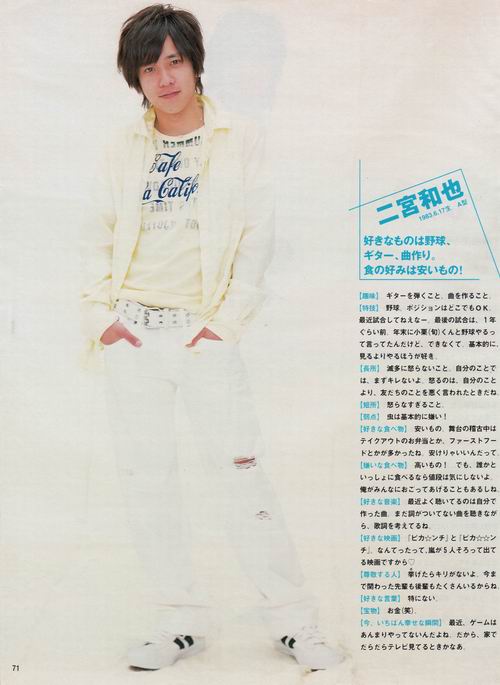 【特长】 棒球。位置是哪里都OK。最近都没有比赛。最后的比赛差不多是一年前。说是年末和小栗(旬)kun一起打棒球,但是没做到。基本上比起看比赛还是喜欢打棒球呢。